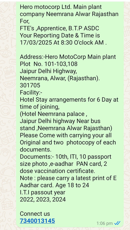 और जिस दिन आपकी कंपनी में ज्वाइनिंग कराई जाएगी उस दिन से आपको 6 के लिए हॉस्टल की सुविधा दी जाएगी और खाना पीना आपको फ्री दिया जाएगा